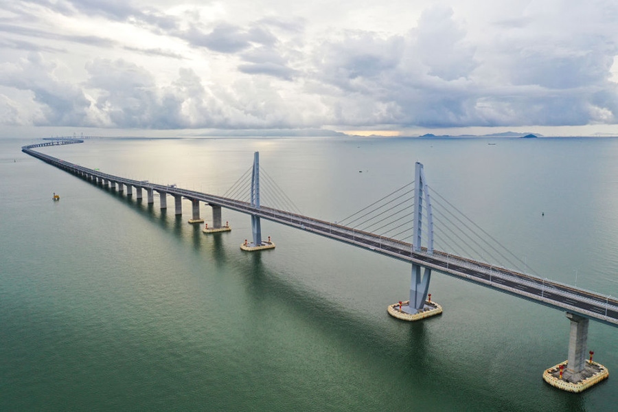 2020年9月12日拍攝的港珠澳大橋(無人機(jī)照片)。新華社記者陳曄華攝
