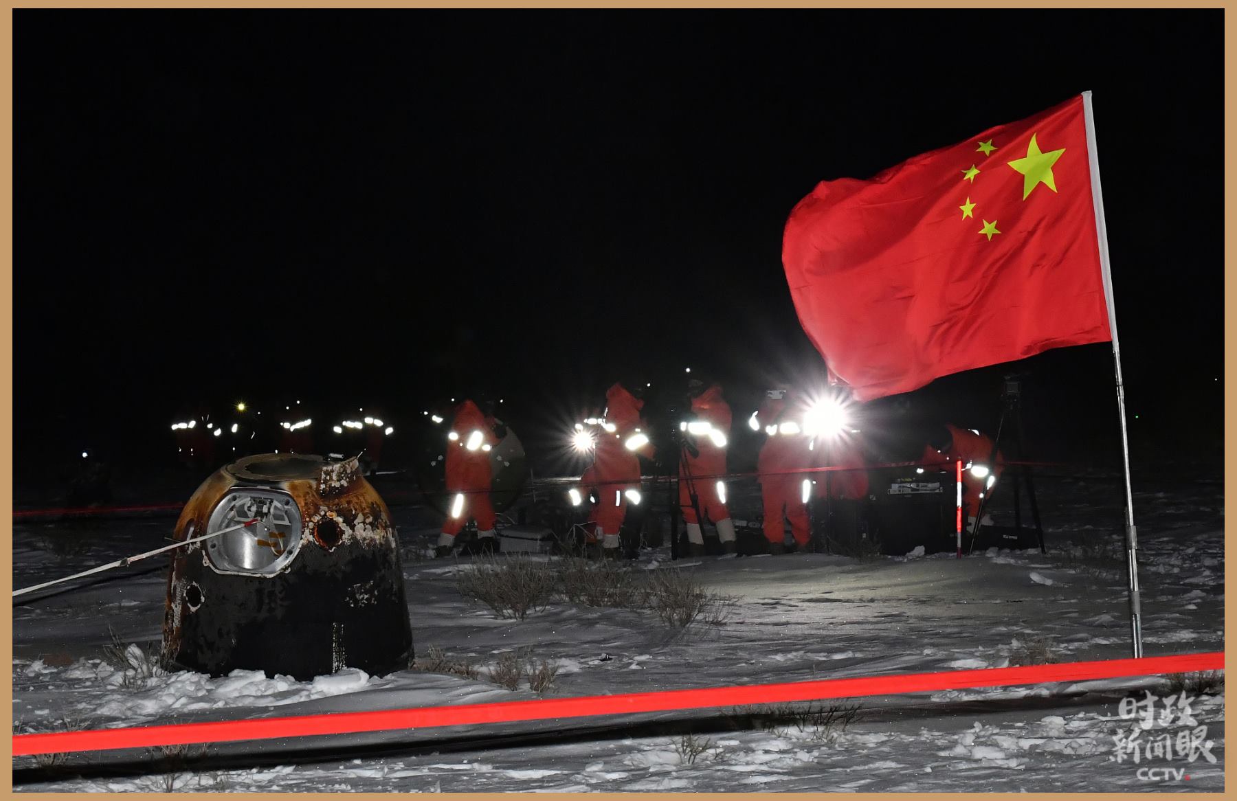△2020年12月17日凌晨,嫦娥五號返回器攜帶月球樣品,在內(nèi)蒙古四子王旗預定區(qū)域安全著陸。