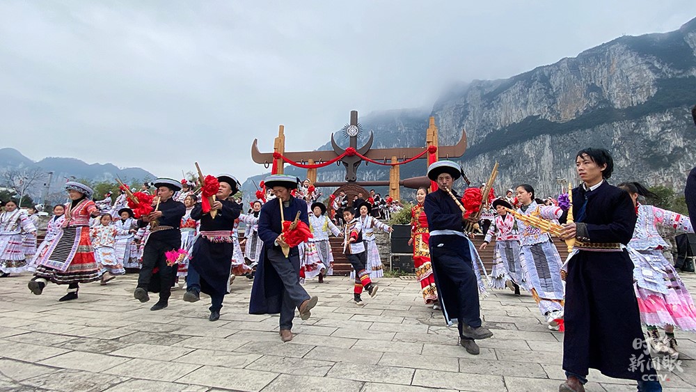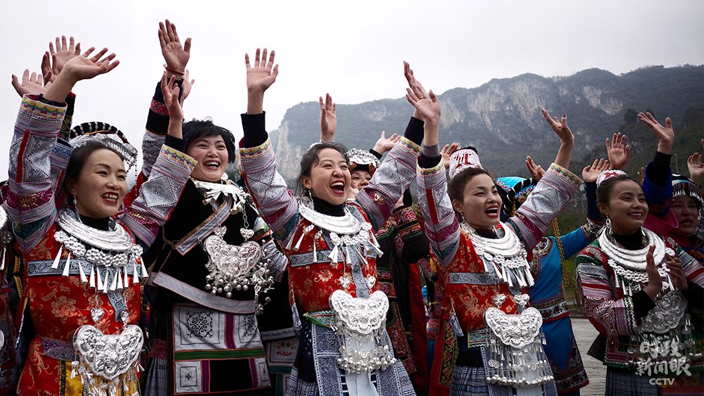 播放視頻畫中畫△視頻丨化屋村村民唱起苗族語(yǔ)歡歌,歌詞大意是“我們都是好朋友,一起跳舞吧”。(總臺(tái)央視記者楊立峰拍攝)