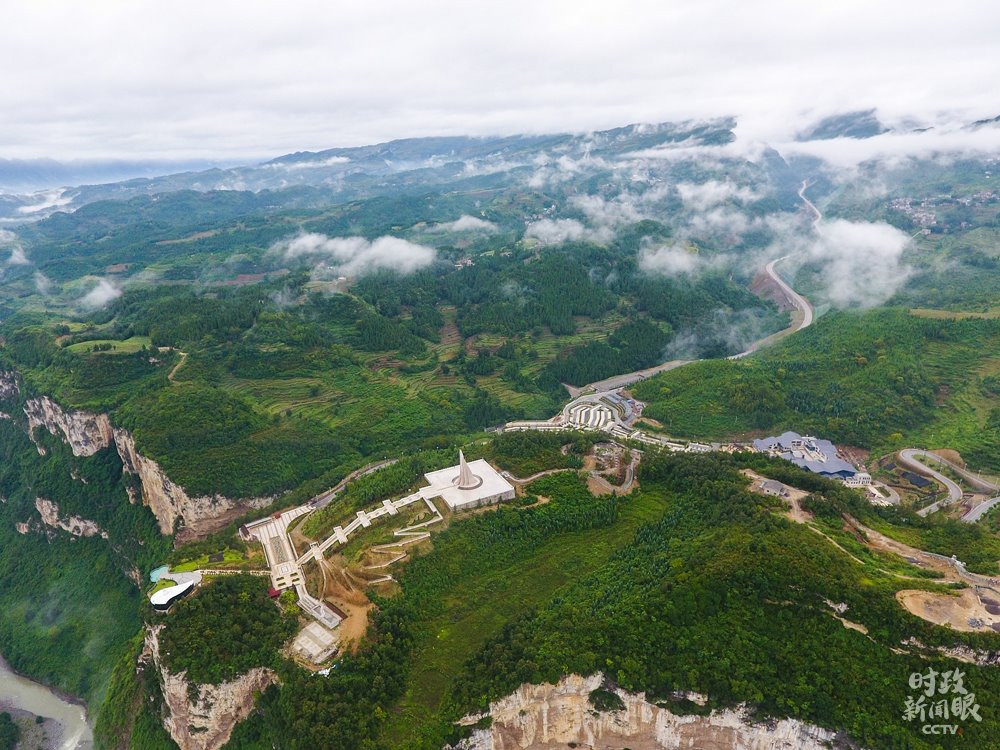 △俯瞰化屋村?!盎荨痹谝妥逭Z(yǔ)里是“巖壁”的意思,村民早年外出必須從懸崖峭壁邊走,地勢(shì)危險(xiǎn)缺少防護(hù)。(總臺(tái)央視記者安楠拍攝)