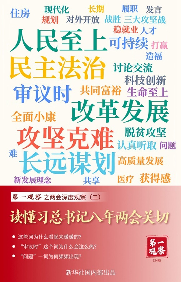 “去年有多少人娶媳婦兒”“農(nóng)家樂辦起來了嗎”……與長期扎根一線的代表委員面對面,總書記熱切詢問百姓冷暖;“養(yǎng)老”“穩(wěn)就業(yè)”“醫(yī)療”“住房”“社會救助”……著力解決人民群眾最關(guān)心最直接最現(xiàn)實(shí)的問題,總書記把它放在最突出位置。