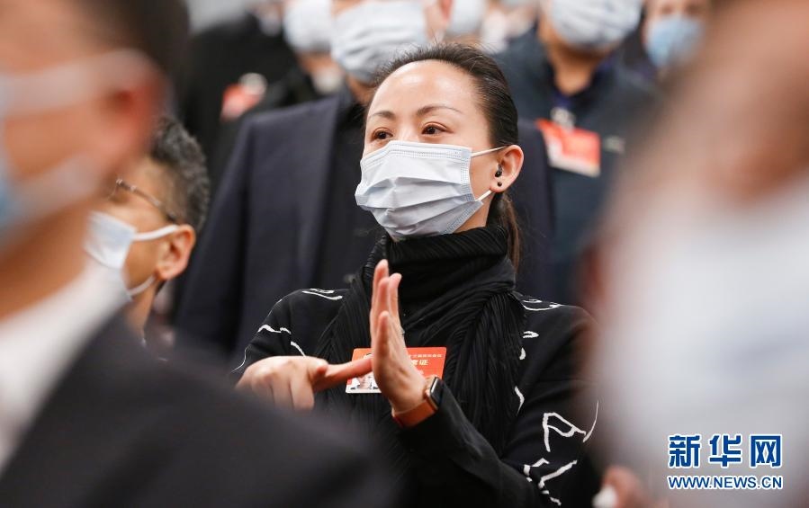 3月5日,第十三屆全國人民代表大會第四次會議在北京人民大會堂開幕。這是列席大會的全國政協(xié)委員、中國殘疾人藝術(shù)團(tuán)團(tuán)長邰麗華用手語“唱”國歌。新華社記者 張玉薇 攝