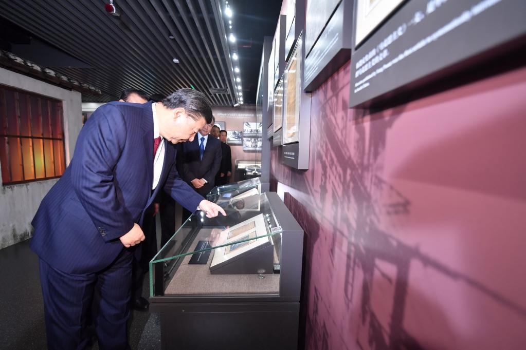 2017年10月31日,習近平等在上海中共一大會址紀念館參觀。(新華社記者李濤攝)