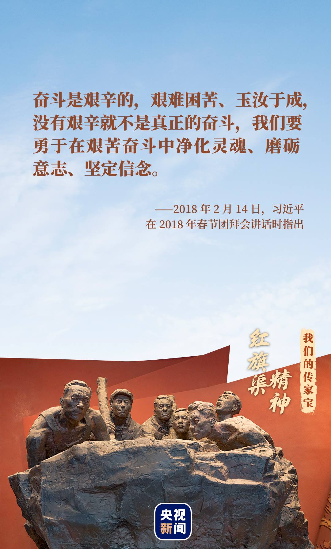 歷久彌新的紅旗渠精神鐫刻在每一塊太行山石上,融入每一滴紅旗渠水中。這面精神旗幟,匯聚起強(qiáng)大的正能量,激勵(lì)著中國(guó)人民在追夢(mèng)路上奮勇前行。