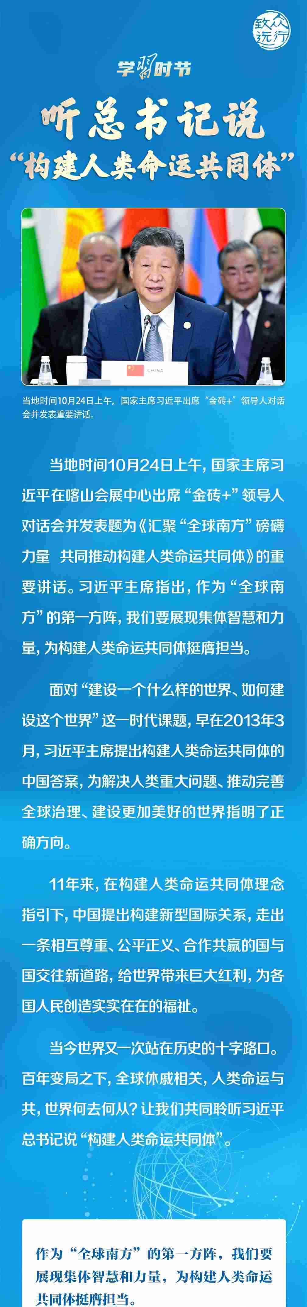 “我堅信,人類和平發(fā)展進步的潮流不可阻擋。讓我們堅定信心,攜手應(yīng)對全球性威脅和挑戰(zhàn),推動構(gòu)建人類命運共同體,共同建設(shè)更加美好的世界!”