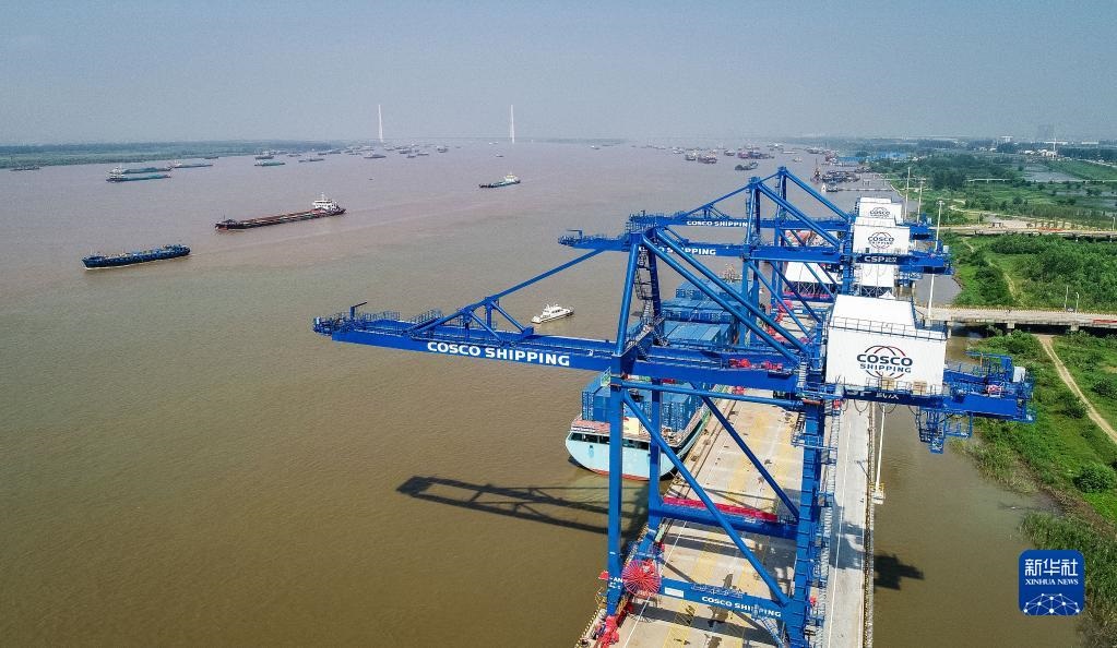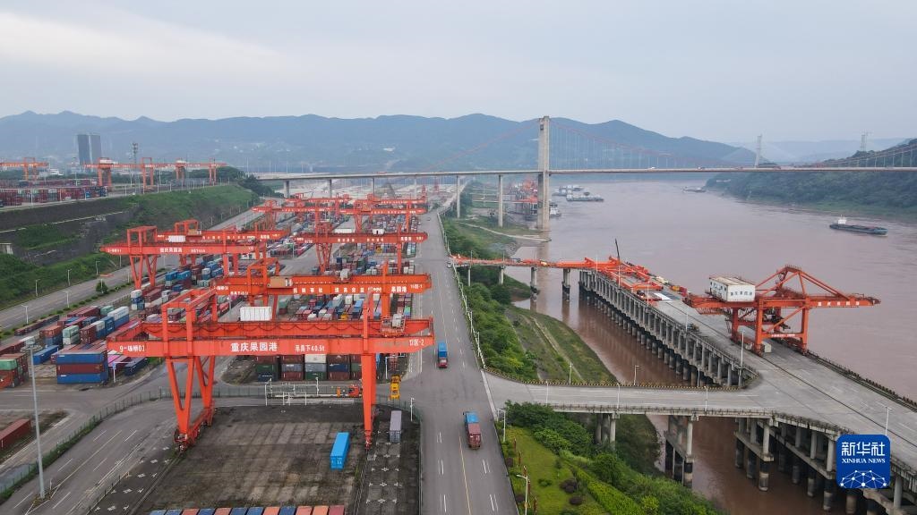 這是重慶果園港(7月19日攝,無(wú)人機(jī)照片)。新華社記者徐欽攝