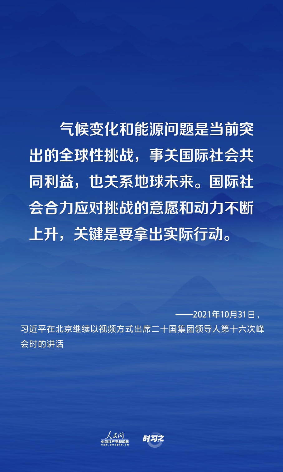 國家主席習(xí)近平10月31日晚在北京繼續(xù)以視頻方式出席二十國集團(tuán)領(lǐng)導(dǎo)人第十六次峰會(huì)。今年以來,就如何應(yīng)對氣候變化和能源問題這一全球性挑戰(zhàn),習(xí)近平多次提出中國倡議和中國方案。