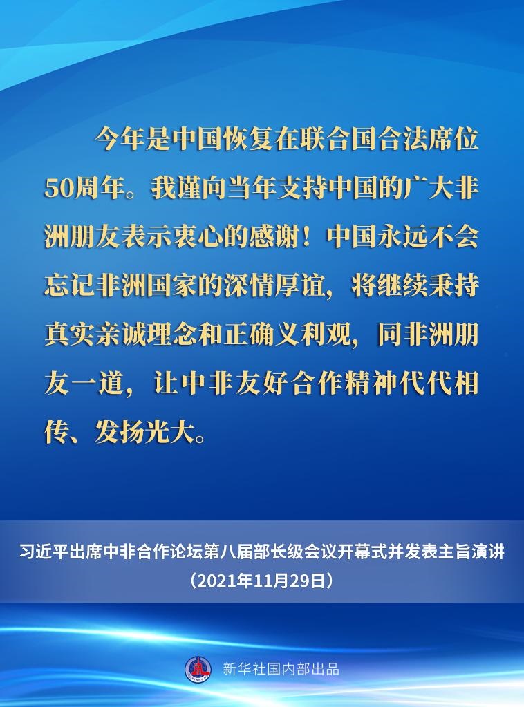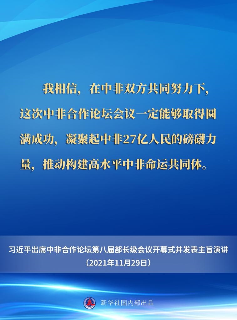11月29日晚,國家主席習近平在北京以視頻方式出席中非合作論壇第八屆部長級會議開幕式并發(fā)表主旨演講。一起來看要點。