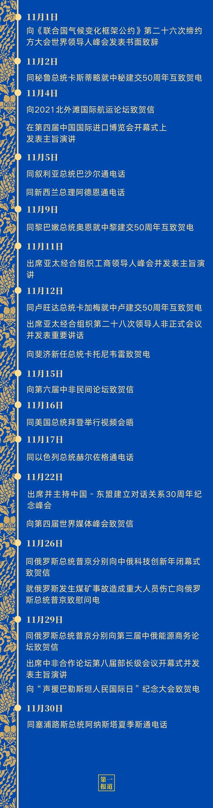 11月,中國元首外交活動豐富、頻密,在雙邊關(guān)系、多邊合作、全球發(fā)展、共建家園四方面彰顯強大推動力——