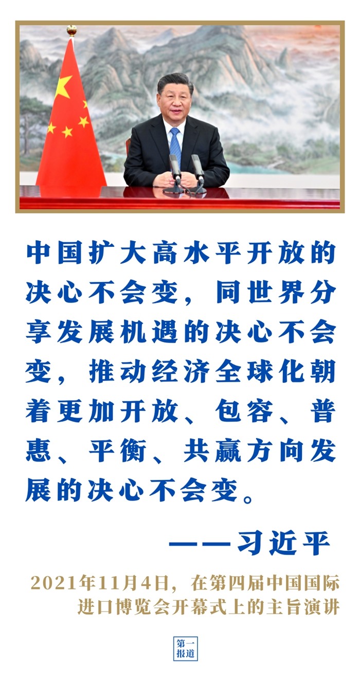 第四屆進(jìn)博會上,習(xí)近平主席表示,中國愿同各國共建開放型世界經(jīng)濟,讓開放的春風(fēng)溫暖世界;第三次“一帶一路”建設(shè)座談會上,習(xí)近平主席強調(diào)以高標(biāo)準(zhǔn)、可持續(xù)、惠民生為目標(biāo),繼續(xù)推動共建“一帶一路”高質(zhì)量發(fā)展。
