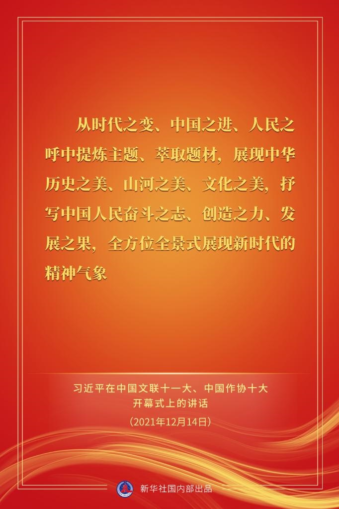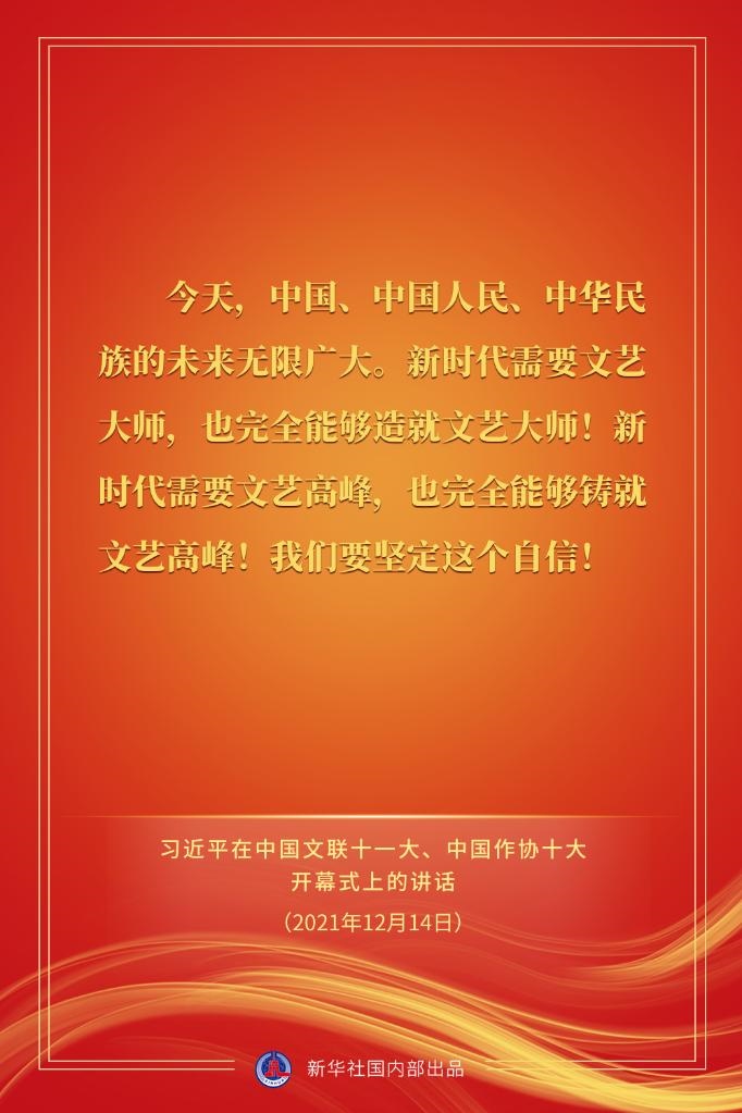 中國文學(xué)藝術(shù)界聯(lián)合會第十一次全國代表大會、中國作家協(xié)會第十次全國代表大會14日上午在北京人民大會堂開幕。習(xí)近平出席大會并發(fā)表重要講話。戳金句,看要點。