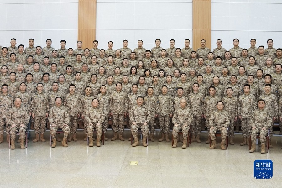 在熱烈的掌聲中,習(xí)近平親切接見中部戰(zhàn)區(qū)官兵代表,同大家合影留念。習(xí)近平充分肯定了中部戰(zhàn)區(qū)成立以來建設(shè)發(fā)展和完成任務(wù)情況。他強調(diào),要深入貫徹新時代黨的強軍思想,深入貫徹新時代軍事戰(zhàn)略方針,高標(biāo)準(zhǔn)完成好各項任務(wù),不斷開創(chuàng)戰(zhàn)區(qū)建設(shè)和備戰(zhàn)打仗工作新局面,以實際行動迎接黨的二十大勝利召開。