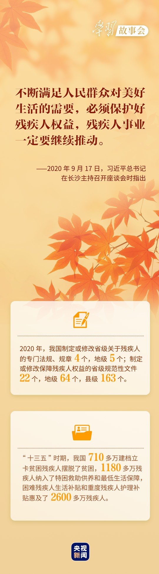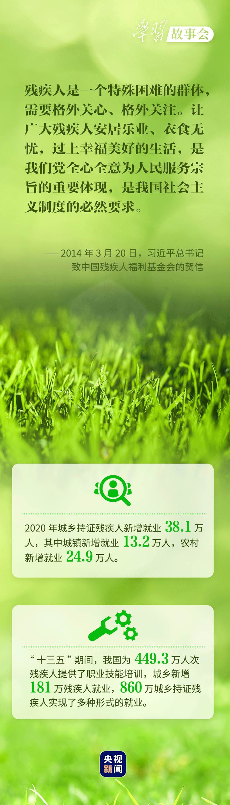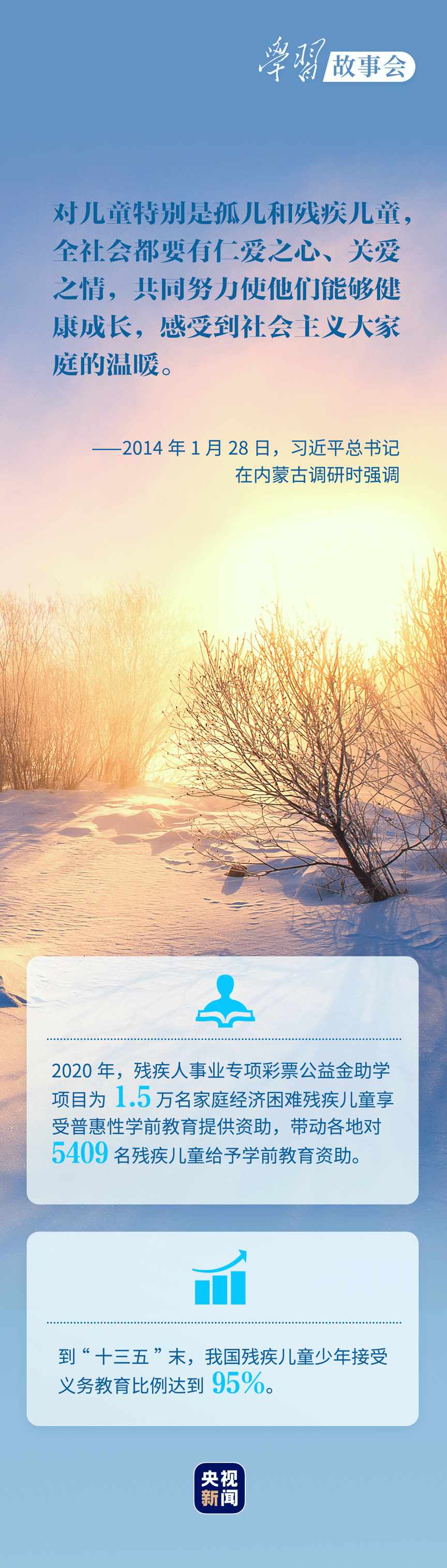 考察河北唐山市截癱療養(yǎng)院,看望呼和浩特市兒童福利院的孤殘兒童,會見殘疾人群體代表.....無論春夏秋冬,總書記對殘疾人群體的殷殷關(guān)懷溫潤心田。