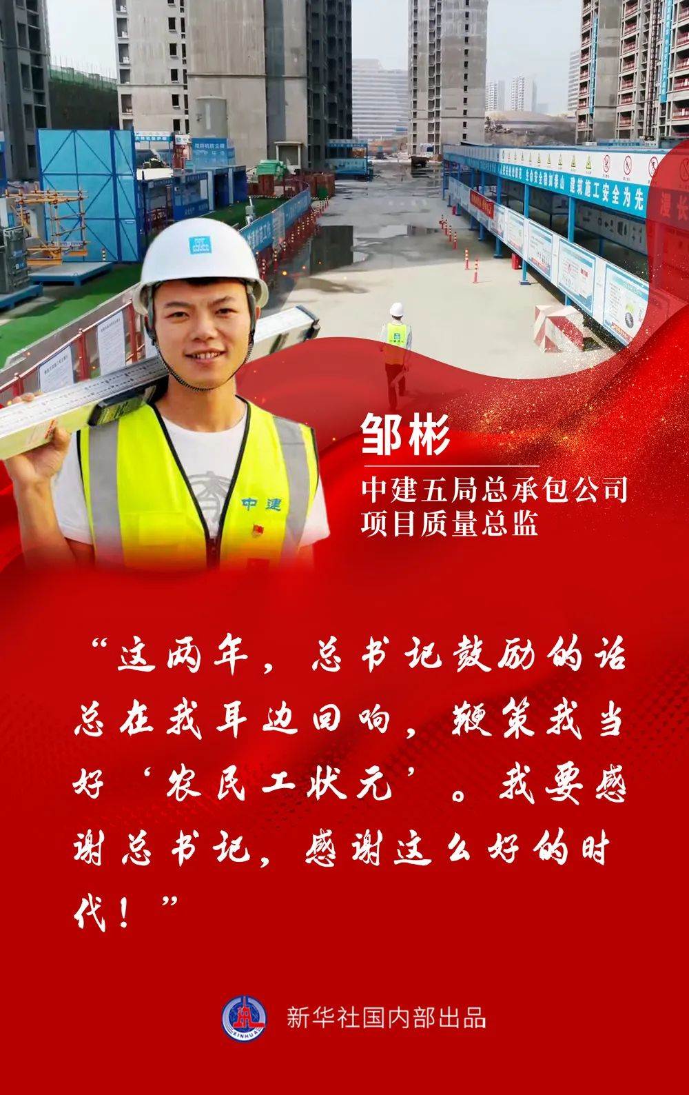 “這兩年,總書記鼓勵的話總在我耳邊回響,鞭策我當好‘農民工狀元’。我要感謝總書記,感謝這么好的時代!”鄒彬臉上洋溢著青春的光芒。