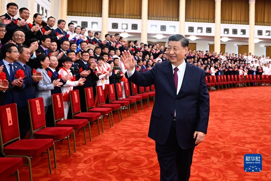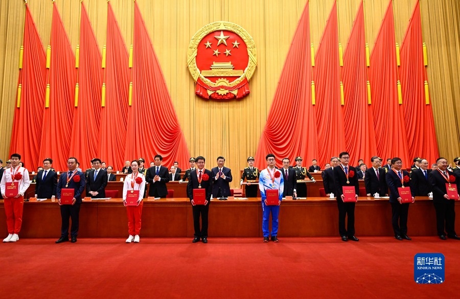 4月8日,北京冬奧會、冬殘奧會總結(jié)表彰大會在北京人民大會堂隆重舉行。習(xí)近平等為北京冬奧會、冬殘奧會突出貢獻個人和突出貢獻集體代表頒獎。新華社記者 丁林 攝