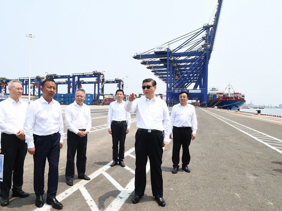 12日上午,習(xí)近平總書(shū)記來(lái)到位于海南省儋州市的洋浦經(jīng)濟(jì)開(kāi)發(fā)區(qū),先后考察了洋浦展示館、洋浦國(guó)際集裝箱碼頭小鏟灘港區(qū),了解洋浦經(jīng)濟(jì)開(kāi)發(fā)區(qū)發(fā)展和中國(guó)特色自由貿(mào)易港建設(shè)等情況。(文字記者:張曉松、朱基釵;攝影記者:李學(xué)仁、謝環(huán)馳、燕雁)