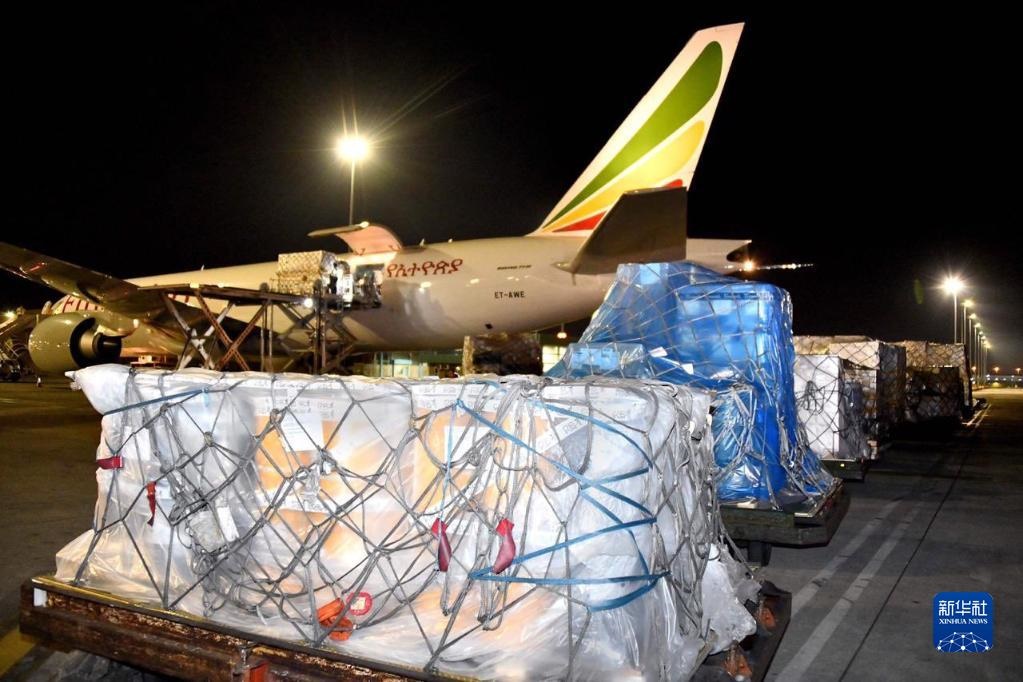 2020年4月14日,中國援助的抗疫物資抵達南非約翰內斯堡奧坦博國際機場。新華社發(fā)(中國駐南非大使館供圖)