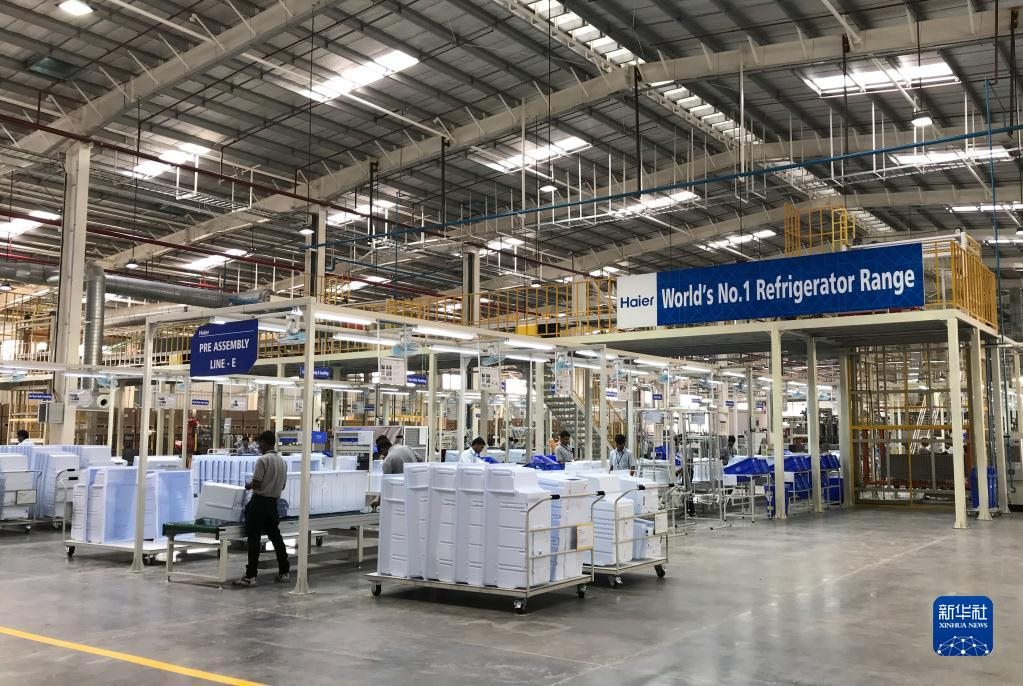 2017年11月16日,在印度浦那市,工人在中國海爾集團工業(yè)園廠房內工作。新華社記者張興軍攝