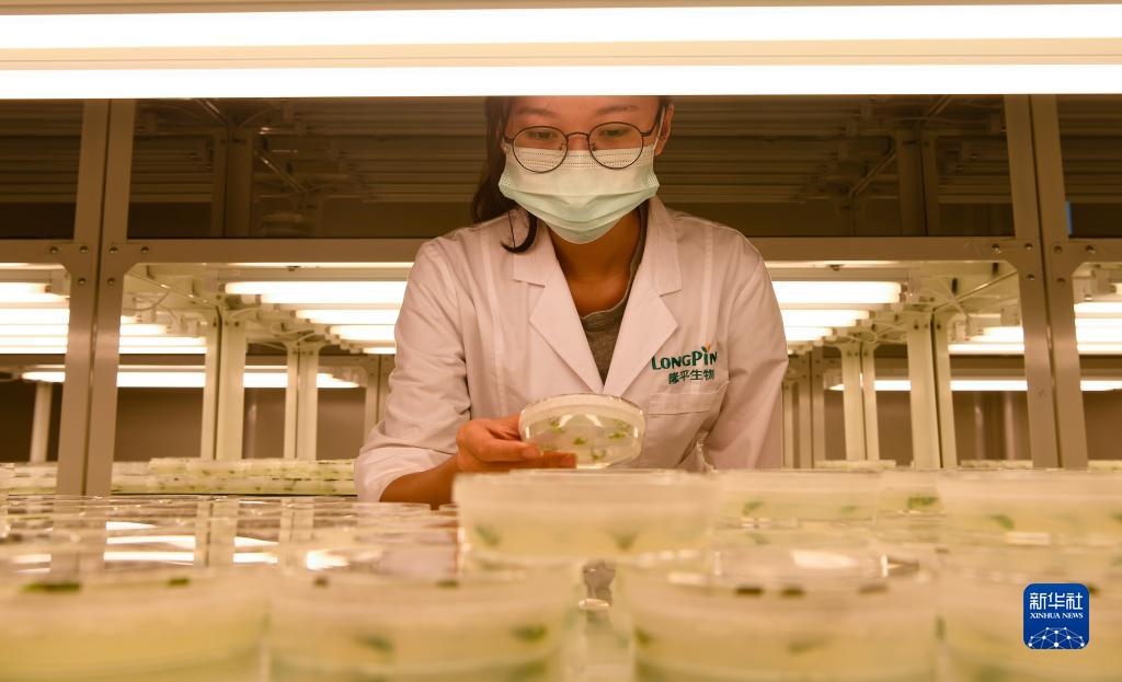 在海南省三亞市崖州灣科技城的崖州灣種子實驗室,隆平生物技術(shù)公司科研人員在開展科研工作(2021年11月25日攝)。新華社記者 楊冠宇 攝