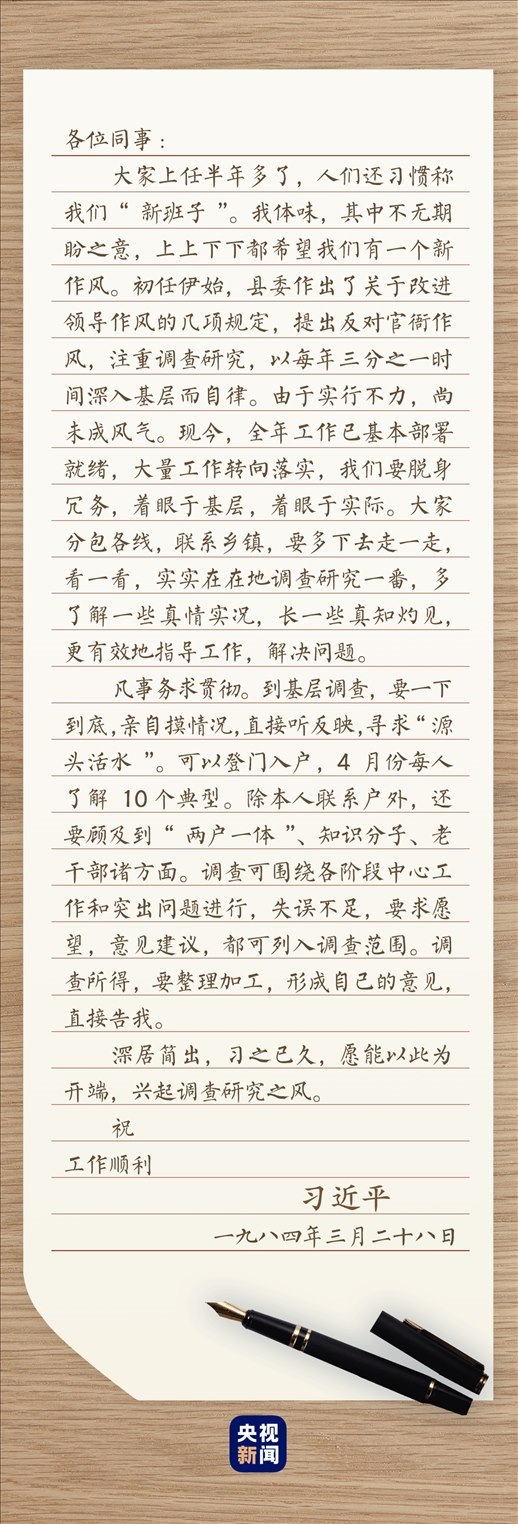 調(diào)查研究開(kāi)展得如火如荼之時(shí),習(xí)近平卻發(fā)現(xiàn),一些地方在匯報(bào)工作時(shí)存在“報(bào)喜不報(bào)憂”的現(xiàn)象。如何聽(tīng)到更多群眾的呼聲?如何更好接受群眾監(jiān)督、了解真實(shí)民意?很快,他想出了新辦法:“搞問(wèn)卷調(diào)查!”