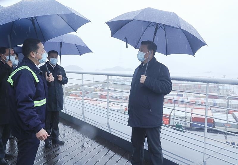 △2020年3月29日,習(xí)近平總書(shū)記在浙江寧波舟山港考察調(diào)研。考察返京不足10天,總書(shū)記在中央財(cái)經(jīng)委員會(huì)第七次會(huì)議上,首次提出構(gòu)建新發(fā)展格局。