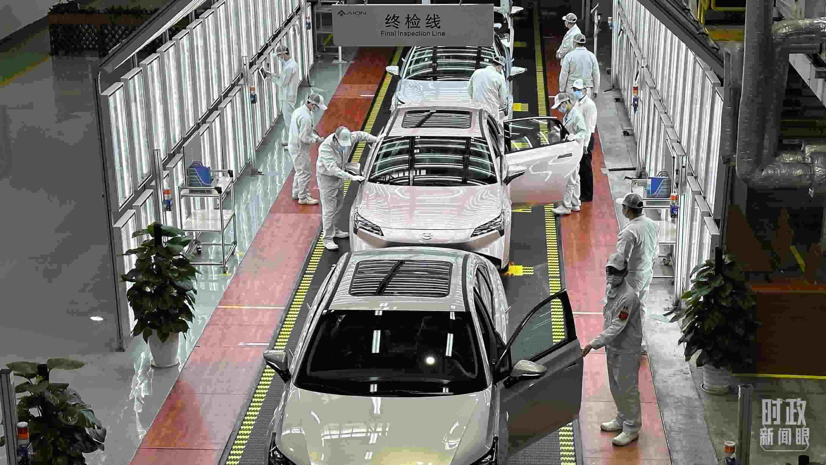 △廣汽埃安總裝車間智能生產線展示。(總臺央視記者趙化拍攝)