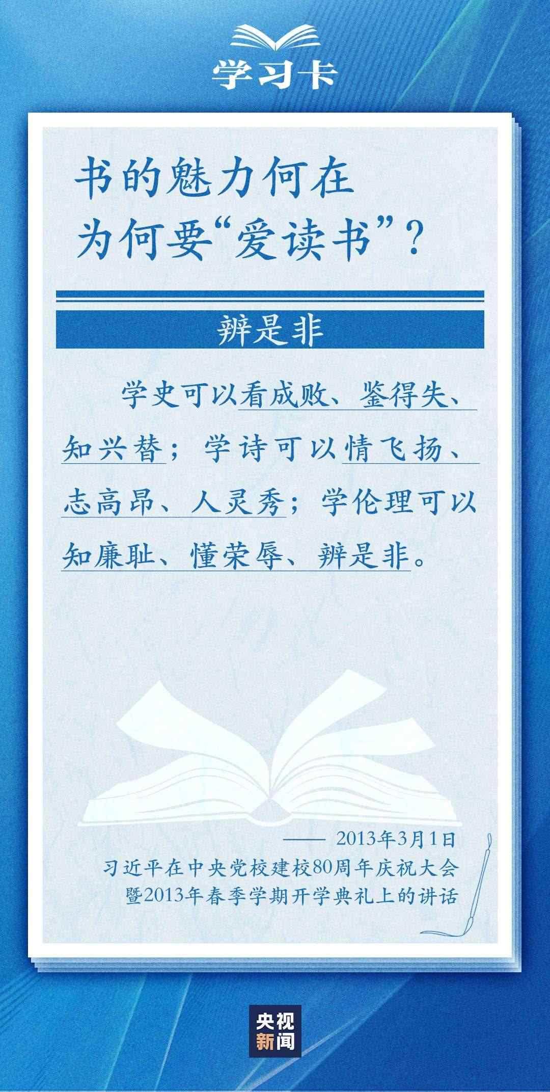 今天(4月23日)是世界讀書(shū)日。習(xí)近平曾多次講述和書(shū)籍的不解之緣,分享讀書(shū)學(xué)習(xí)的感悟,倡導(dǎo)“愛(ài)讀書(shū)、讀好書(shū)、善讀書(shū)”。書(shū)的魅力何在,為何要“愛(ài)讀書(shū)”?如何能“選好書(shū)”?怎樣“善讀書(shū)”?一起學(xué)習(xí)↓
