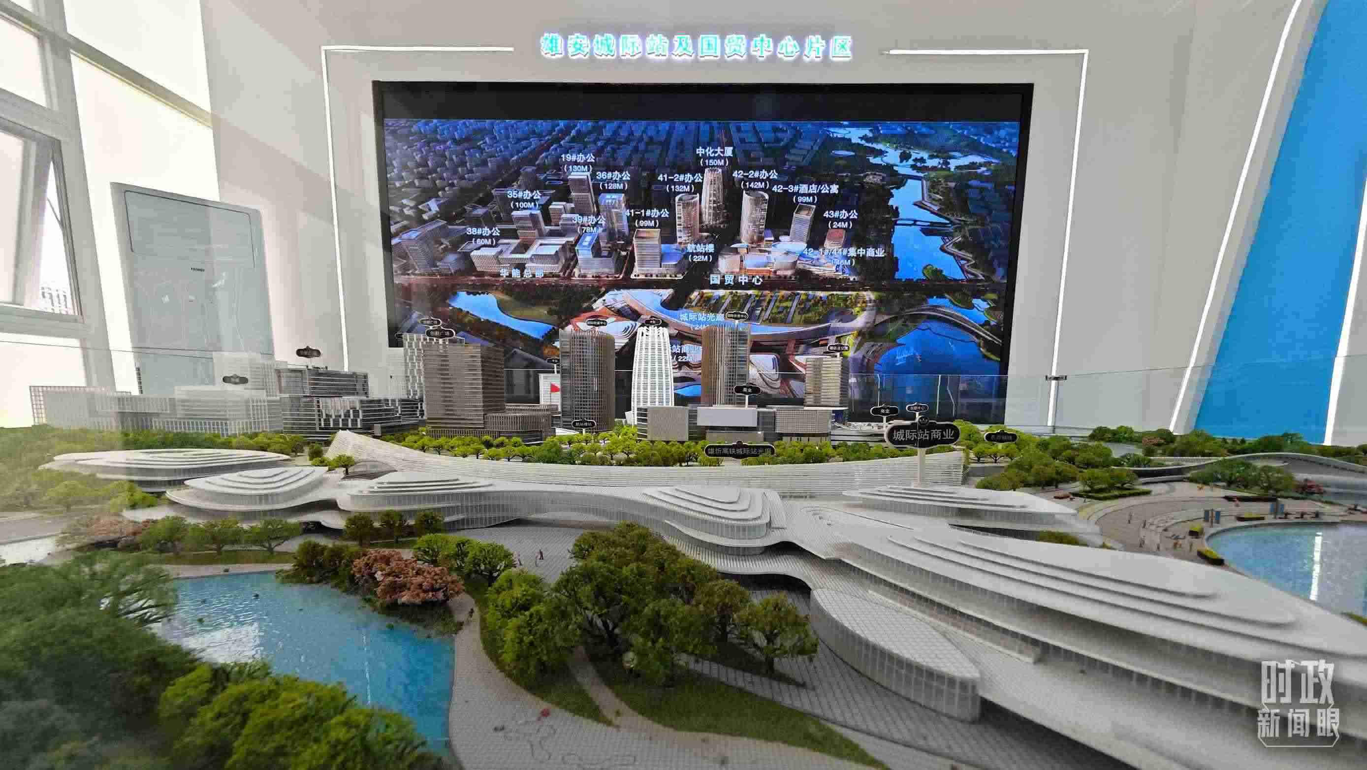 △雄安城際站及國(guó)貿(mào)中心項(xiàng)目模型。(總臺(tái)央視記者彭漢明拍攝)