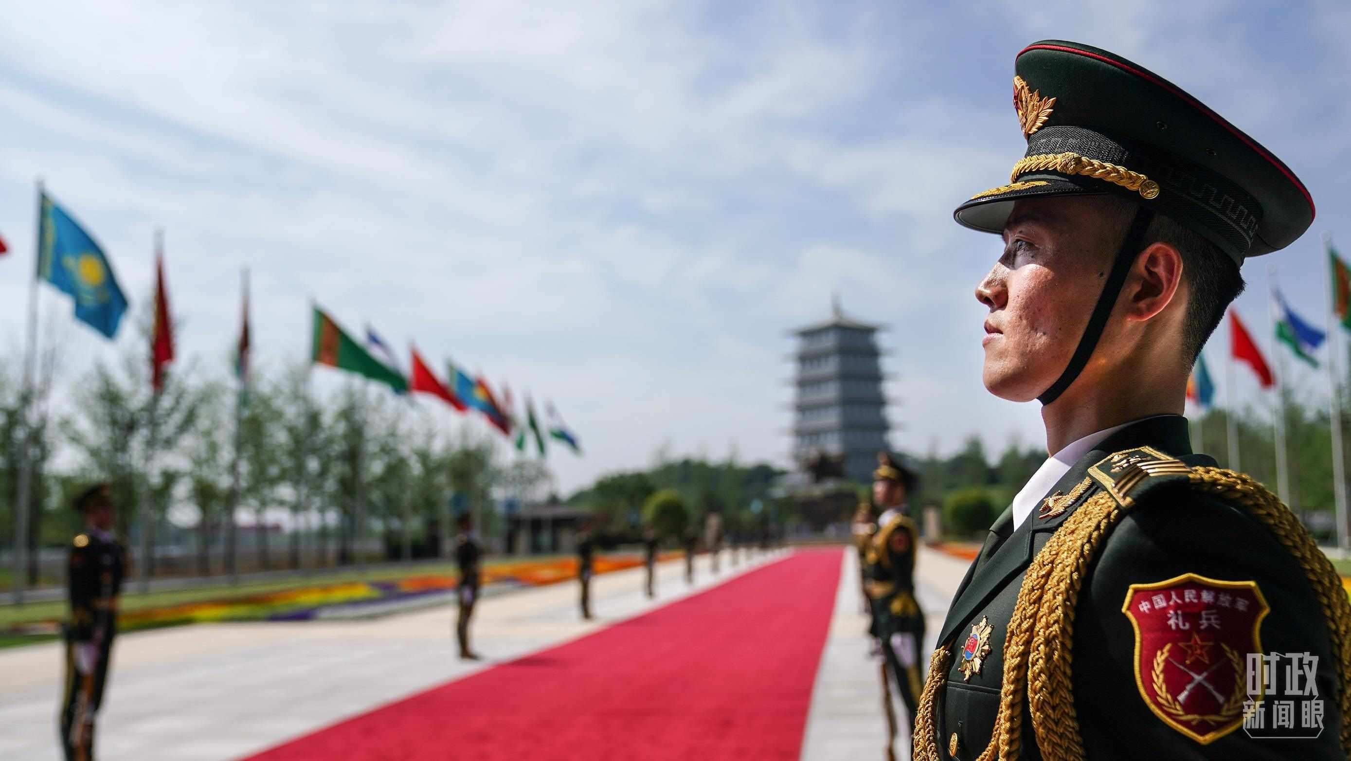 △ 迎賓紅毯兩側(cè),中國(guó)人民解放軍禮兵就位。(總臺(tái)國(guó)廣記者李晉拍攝)