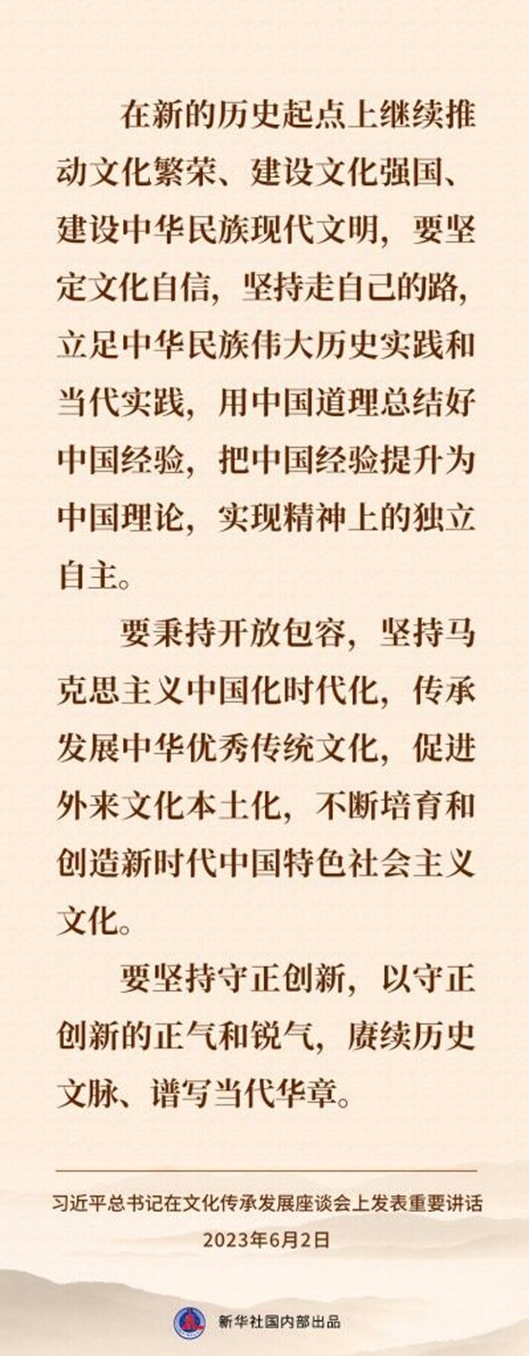 6月2日,習(xí)近平總書記在北京出席文化傳承發(fā)展座談會(huì)并發(fā)表重要講話。一起來看講話速覽↓