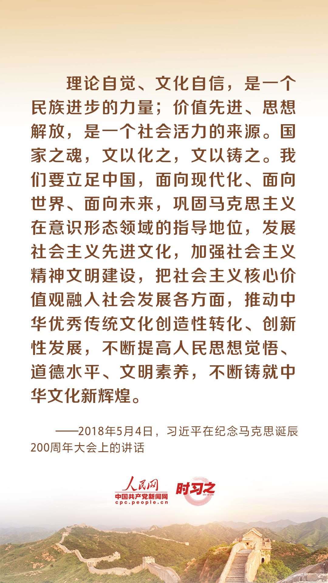 “理論自覺、文化自信,是一個民族進步的力量;價值先進、思想解放,是一個社會活力的來源?!秉h的十八大以來,習(xí)近平總書記就文化建設(shè)提出了一系列新理念新思想新戰(zhàn)略,引領(lǐng)中華文化創(chuàng)造性轉(zhuǎn)化、創(chuàng)新性發(fā)展。推動弘揚和發(fā)展社會主義先進文化,習(xí)近平多次作出重要闡釋。