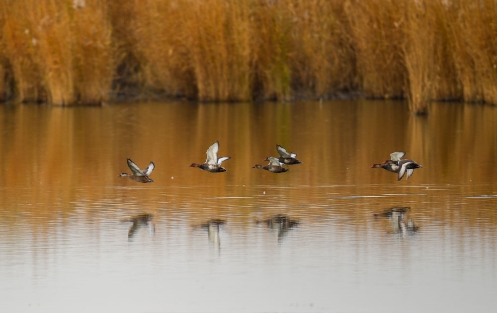 2020年10月28日,候鳥在烏梁素海飛翔。