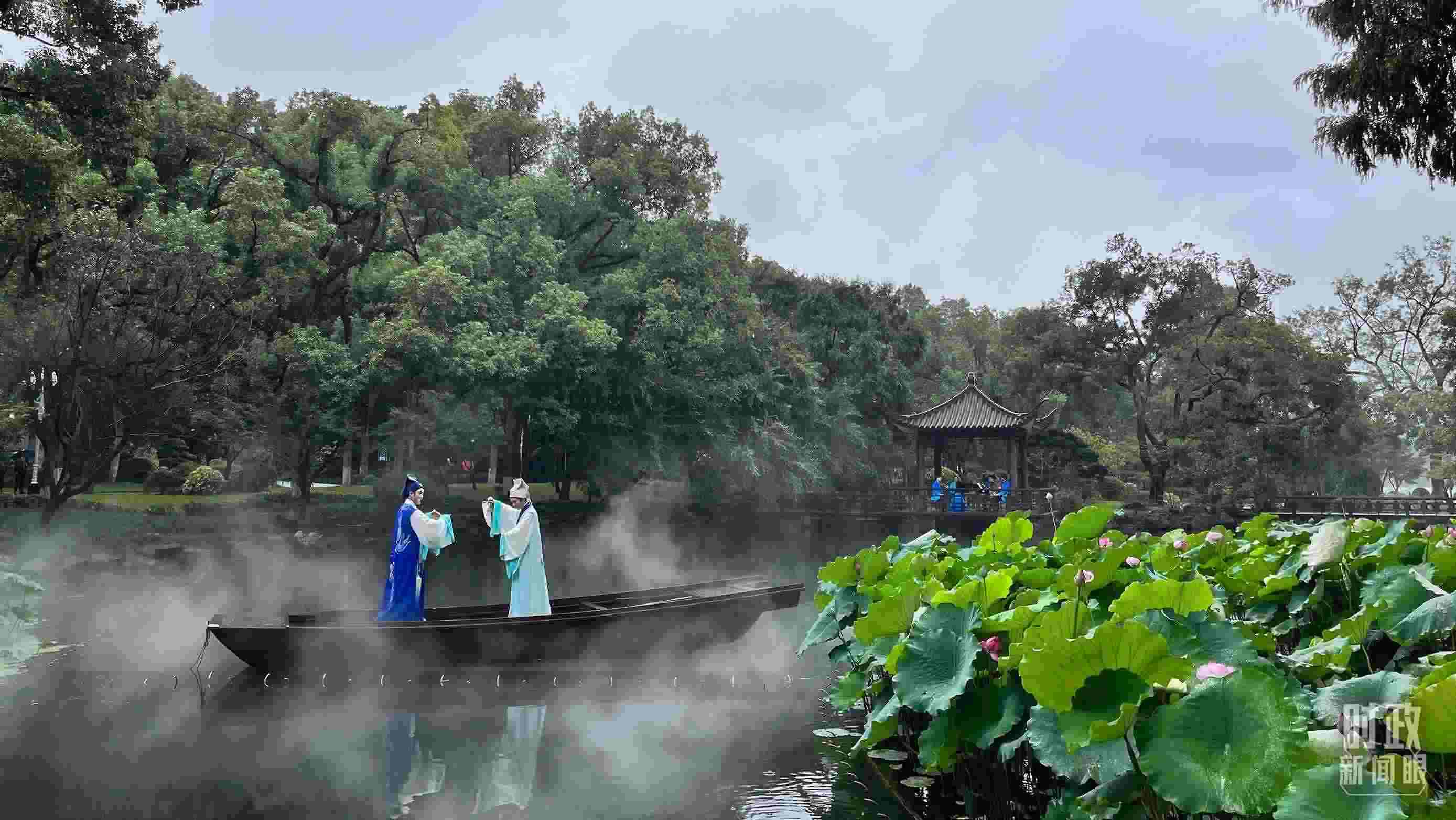 沿著湖畔長廊,漫步至漪園宴會廳,沿途可以欣賞浙江小百花越劇院青年演員表演的越劇經(jīng)典劇目《梁祝》選段《十八相送》。