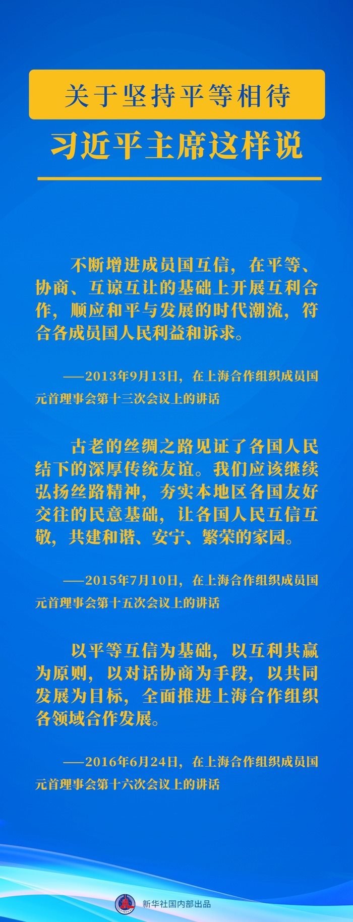 自2013年起,習(xí)近平主席已連續(xù)10年出席上合組織峰會(huì)并發(fā)表重要講話。習(xí)近平主席關(guān)于上合組織發(fā)展的這些重要論述,讓我們一起學(xué)習(xí)領(lǐng)悟↓