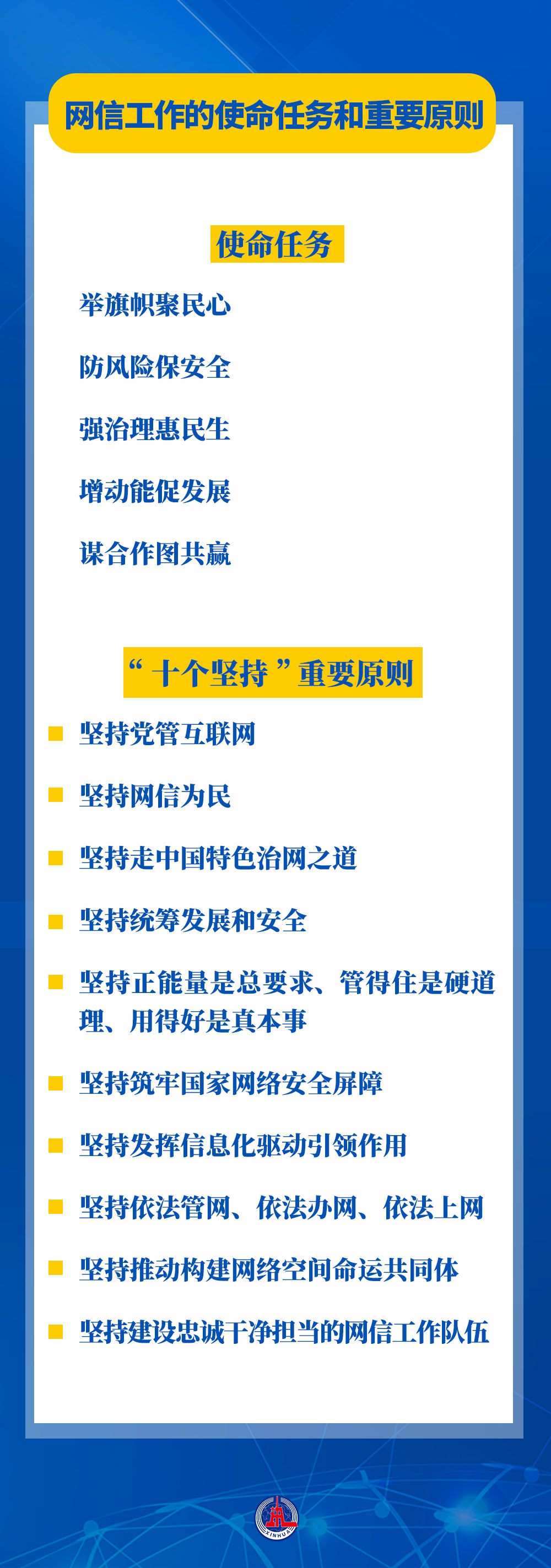 習(xí)近平總書記鮮明提出的網(wǎng)信工作“5個(gè)方面、30個(gè)字”的使命任務(wù),涵蓋互聯(lián)網(wǎng)內(nèi)容建設(shè)、網(wǎng)絡(luò)安全、網(wǎng)絡(luò)惠民、信息化建設(shè)、國際網(wǎng)絡(luò)空間治理等,“十個(gè)堅(jiān)持”重要原則進(jìn)一步豐富和發(fā)展了習(xí)近平總書記關(guān)于網(wǎng)絡(luò)強(qiáng)國的重要思想,把黨對網(wǎng)信工作的規(guī)律性認(rèn)識(shí)提升到全新高度。總書記提出的使命任務(wù)和重要原則,具有很強(qiáng)的政治性、戰(zhàn)略性、指導(dǎo)性,既著眼當(dāng)前,又謀深慮遠(yuǎn),為做好新時(shí)代新征程網(wǎng)信工作指明了前進(jìn)方向,為推進(jìn)實(shí)現(xiàn)網(wǎng)絡(luò)強(qiáng)國提供了根本遵循。
