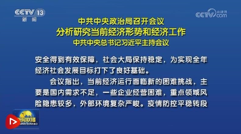 7月24日,中共中央政治局召開(kāi)會(huì)議,分析研究當(dāng)前經(jīng)濟(jì)形勢(shì),部署下半年經(jīng)濟(jì)工作。習(xí)近平總書(shū)記主持會(huì)議。