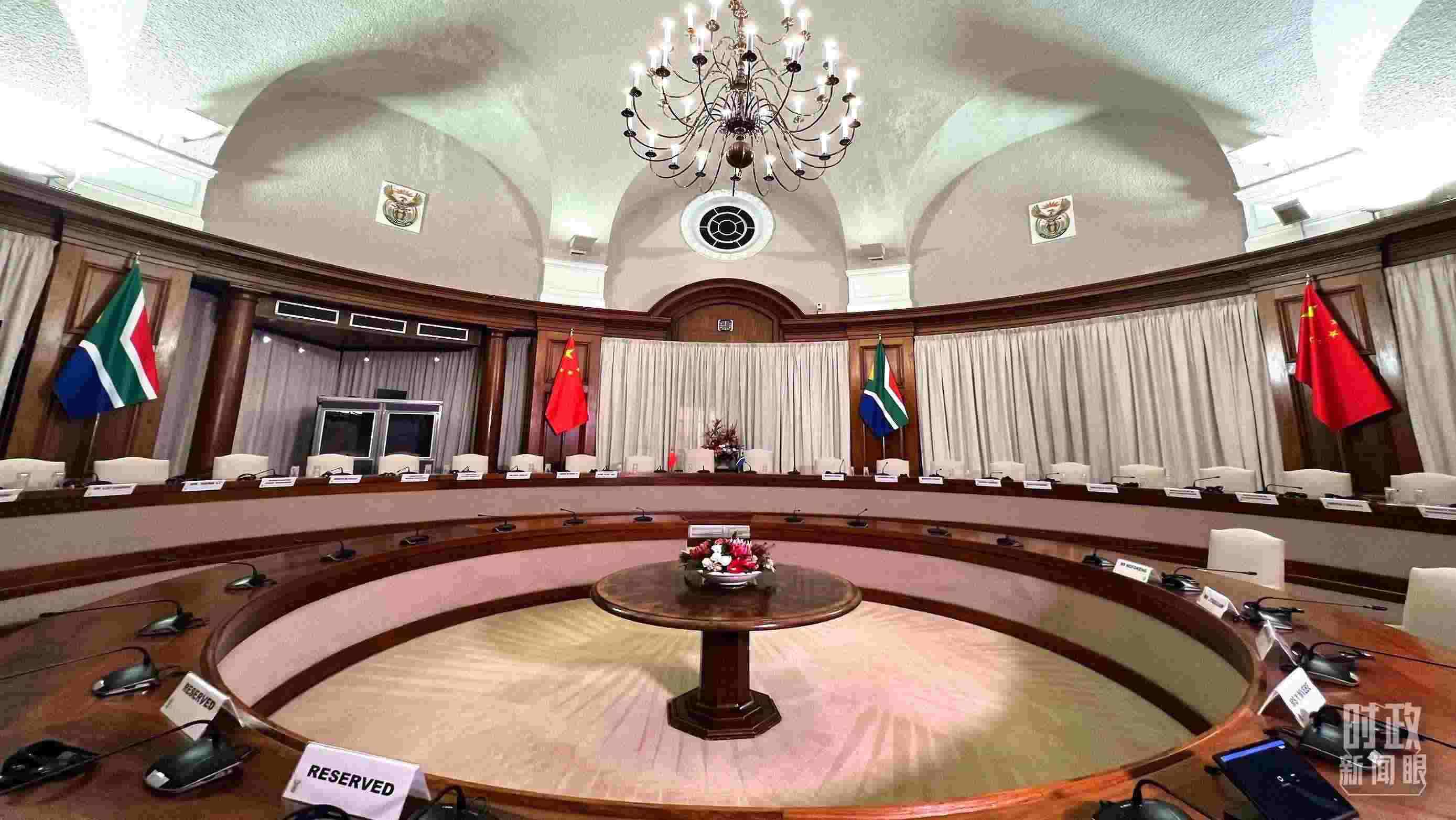 △會談開始前的會場。(總臺央視記者王鵬飛拍攝)