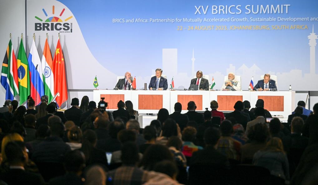 23日,在出席金磚國家領(lǐng)導(dǎo)人第十五次會(huì)晤時(shí),習(xí)近平主席強(qiáng)調(diào),加速擴(kuò)員進(jìn)程,讓更多國家加入到金磚大家庭,集眾智、匯群力,推動(dòng)全球治理朝著更加公正合理的方向發(fā)展。