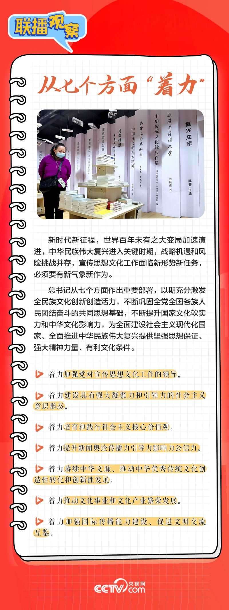 近日,習(xí)近平總書記對宣傳思想文化工作作出重要指示,提出“新的文化使命”“首要政治任務(wù)”等論斷,并要求從七個(gè)方面著力,為全面建設(shè)社會(huì)主義現(xiàn)代化國家、全面推進(jìn)中華民族偉大復(fù)興提供堅(jiān)強(qiáng)思想保證、強(qiáng)大精神力量、有利文化條件。