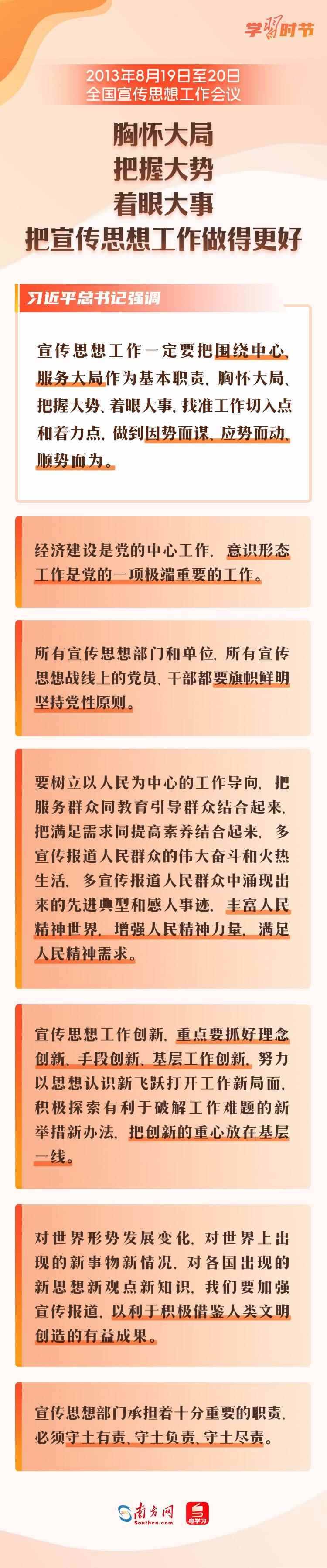 宣傳思想文化工作事關(guān)黨的前途命運(yùn),事關(guān)國(guó)家長(zhǎng)治久安,事關(guān)民族凝聚力和向心力,是一項(xiàng)極端重要的工作。黨的十八大以來(lái),宣傳思想文化工作之所以取得歷史性成就,最根本就在于有習(xí)近平總書記領(lǐng)航掌舵,有習(xí)近平新時(shí)代中國(guó)特色社會(huì)主義思想科學(xué)指引。讓我們一同回顧剛剛召開的全國(guó)宣傳思想文化工作會(huì)議,以及2018年、2013年召開的兩次全國(guó)宣傳思想工作會(huì)議,看看總書記通過(guò)這三次會(huì)議,為宣傳思想文化工作劃出了哪些重點(diǎn)。