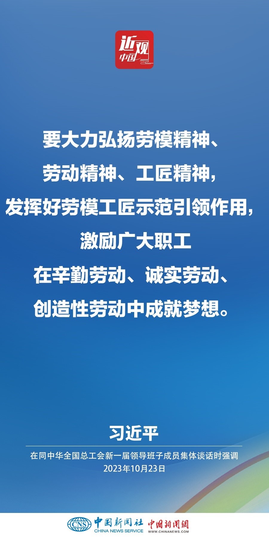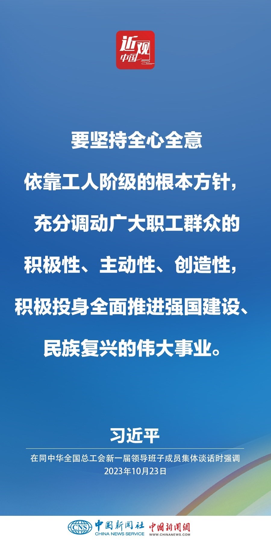 中共中央總書記、國(guó)家主席、中央軍委主席習(xí)近平23日下午在中南海同中華全國(guó)總工會(huì)新一屆領(lǐng)導(dǎo)班子成員集體談話并發(fā)表重要講話。他強(qiáng)調(diào)——