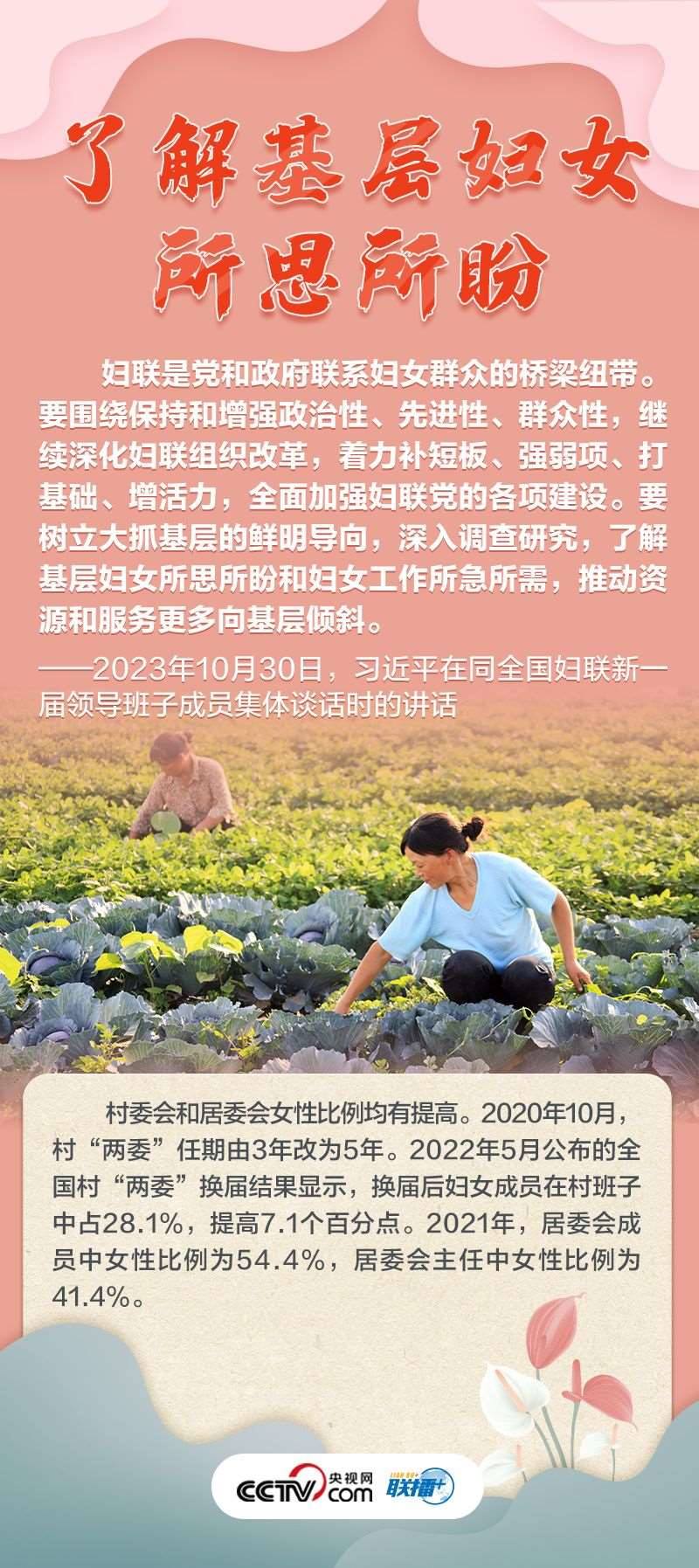“婦聯(lián)是黨和政府聯(lián)系婦女群眾的橋梁紐帶?!?0月30日,習近平總書記同全國婦聯(lián)新一屆領(lǐng)導班子成員集體談話并發(fā)表重要講話,高度肯定巾幗力量,并為新形勢下婦女事業(yè)和婦聯(lián)工作發(fā)展指明方向。