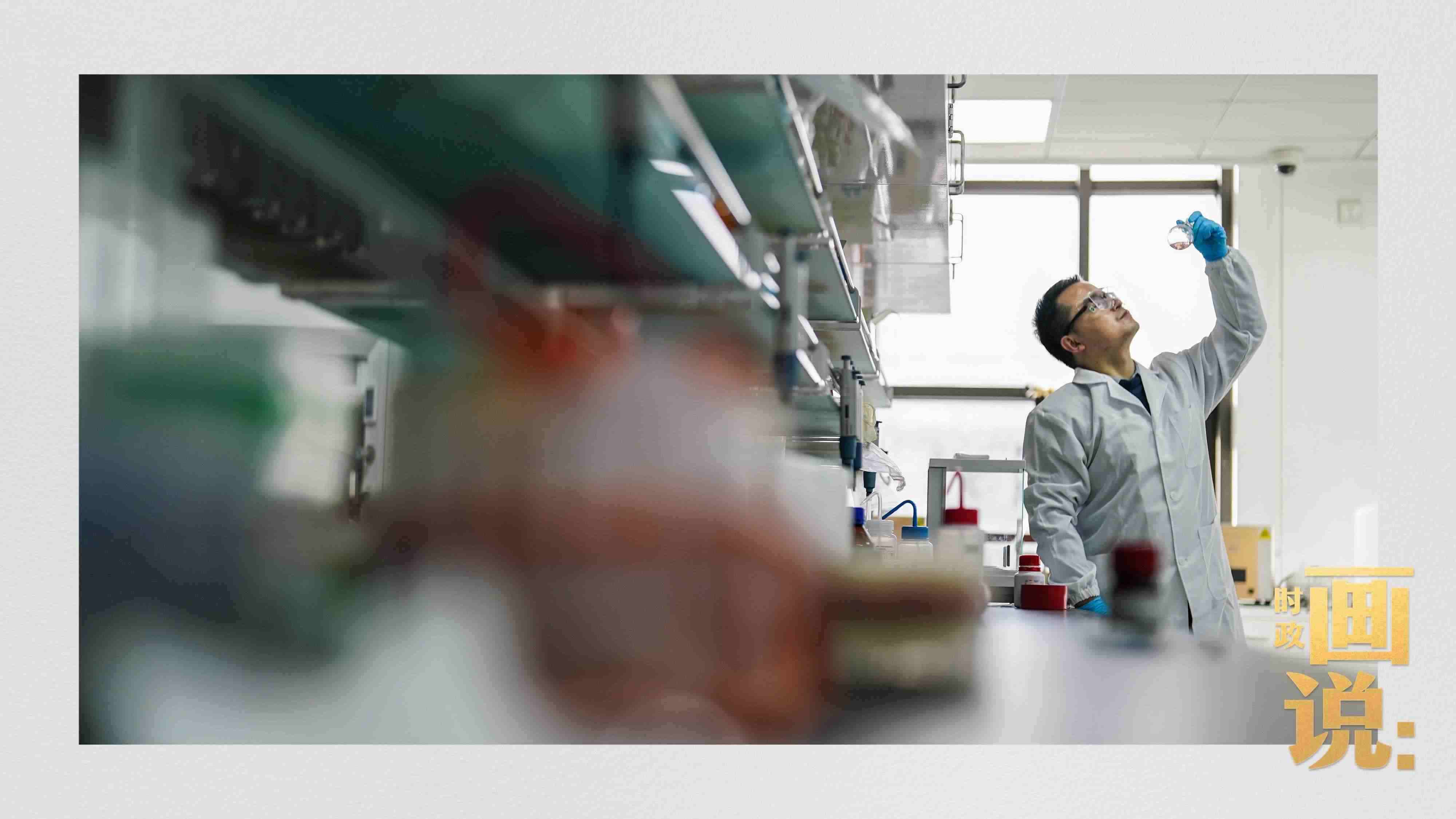 △復(fù)旦大學(xué)分子催化和功能材料實(shí)驗(yàn)室,實(shí)驗(yàn)人員正在制備試劑。楊浦區(qū),上海。