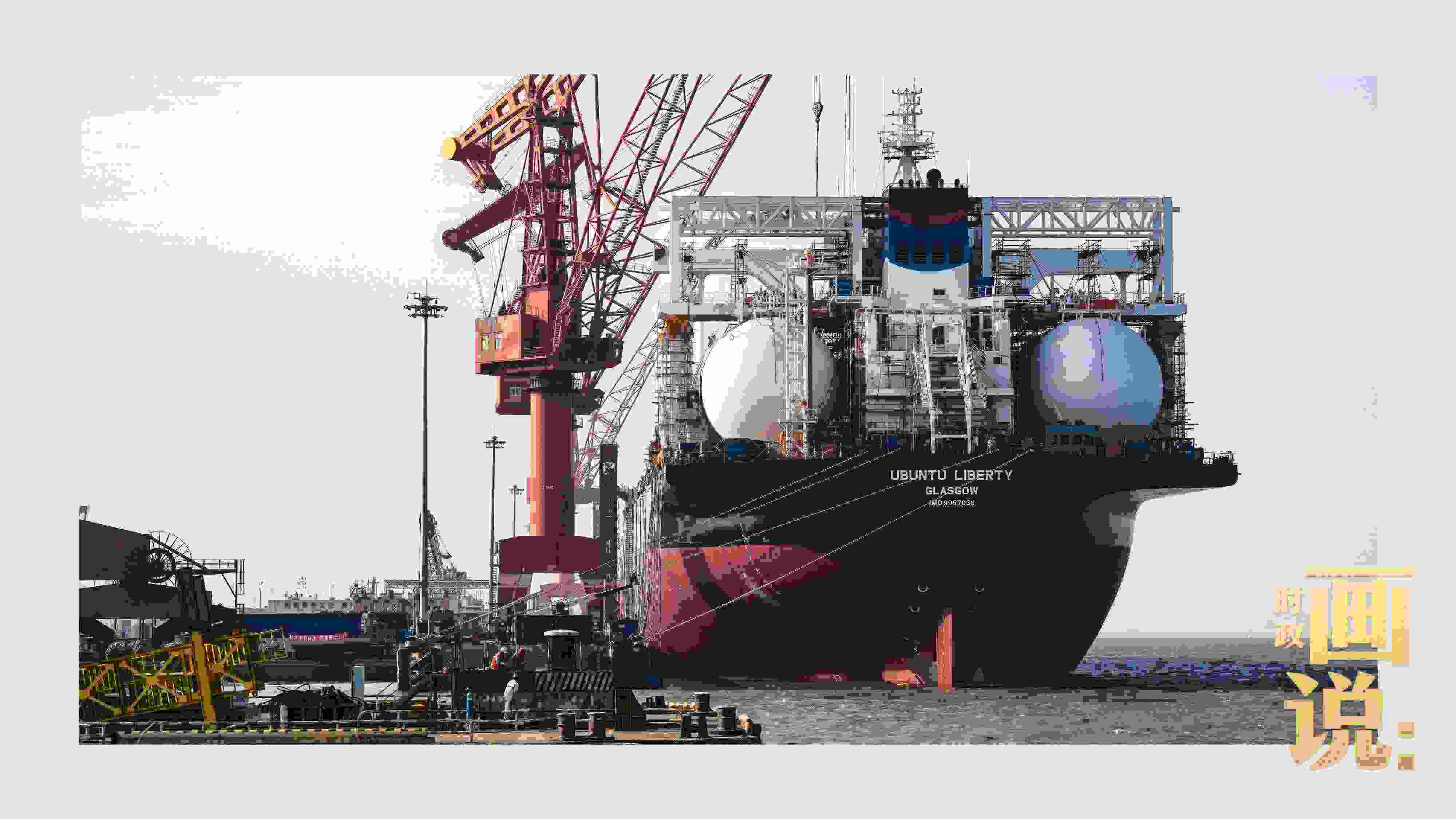 △外高橋船塢碼頭旁,一艘建造中的巨型雙燃料散貨船停靠在泊位。浦東新區(qū),上海
