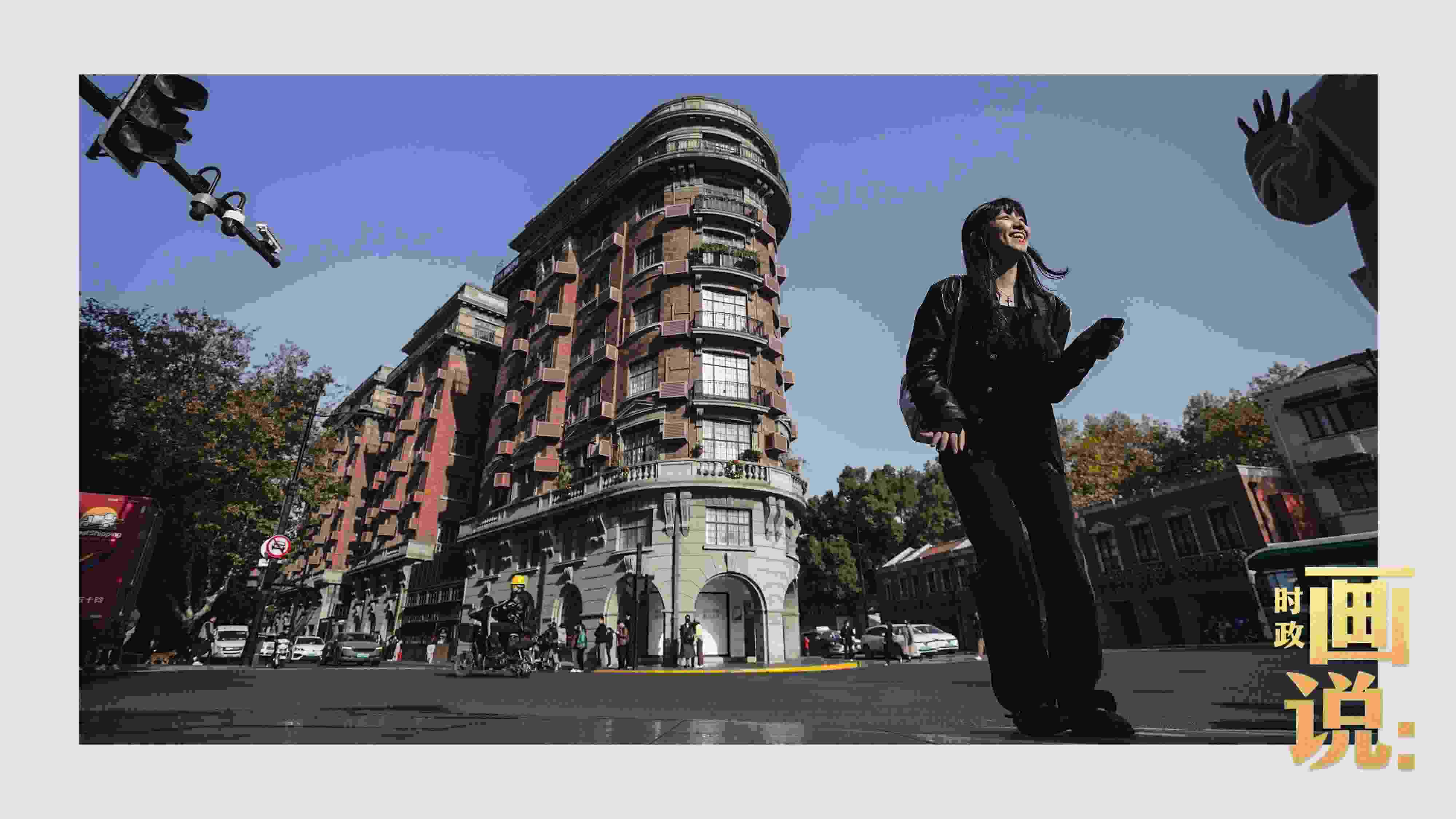 △武康大樓前留影的外籍游客興奮不已?;春V新?,上海。