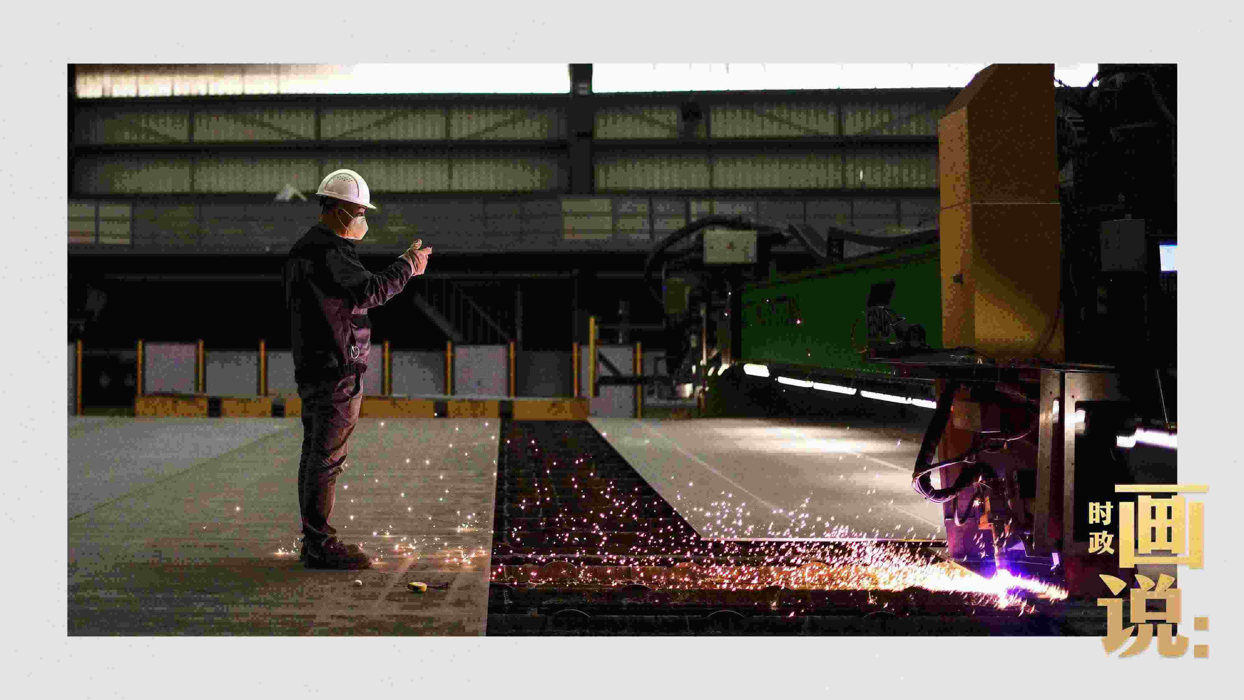 △薄板智能生產(chǎn)中心內(nèi),激光切割機(jī)正在將特種鋼板加工成標(biāo)準(zhǔn)零件。浦東新區(qū),上海。