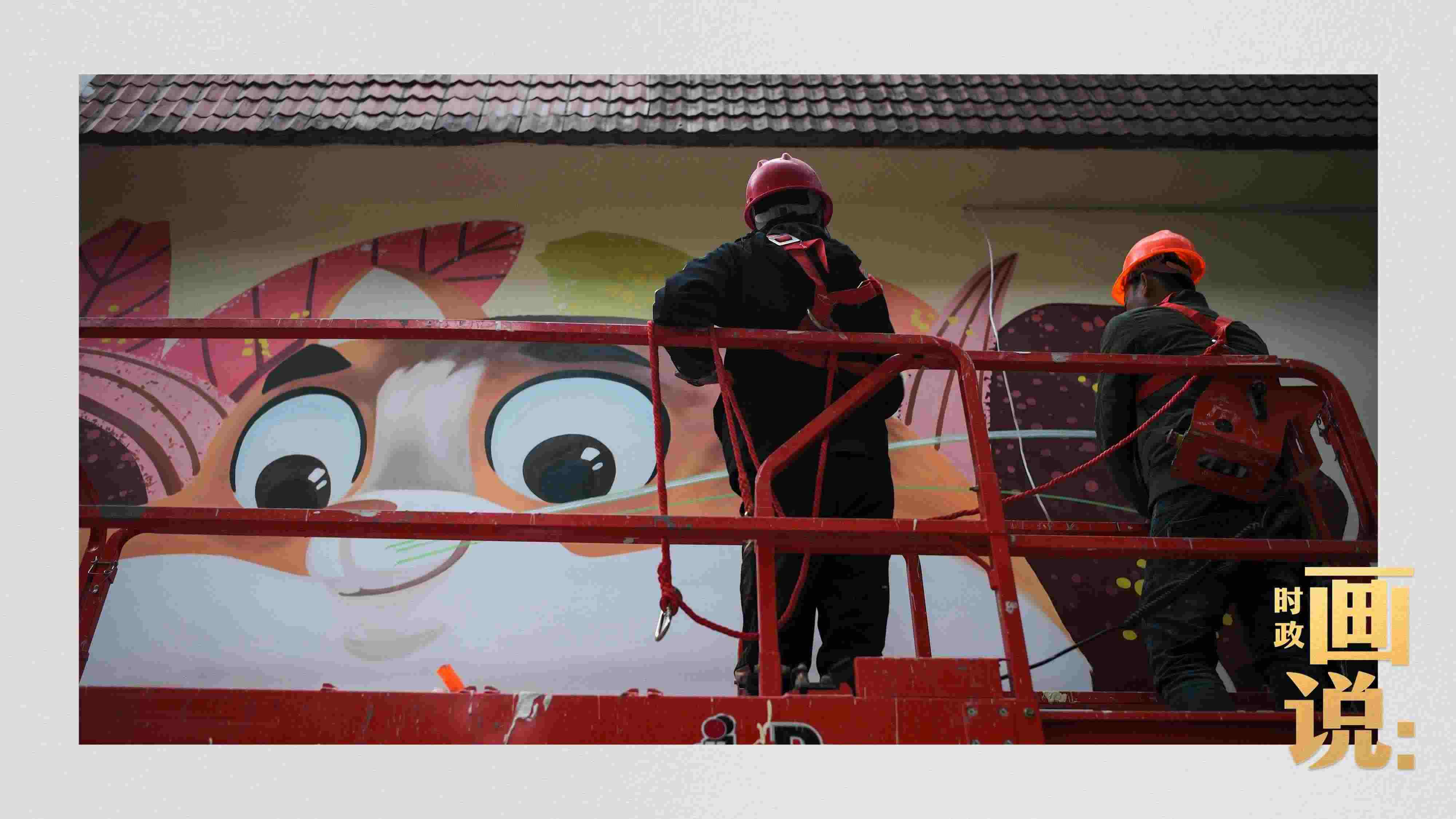 △工人在街道外墻上噴繪畫作,一座城市的藝術(shù)氣息濃縮于街巷的細(xì)節(jié)里。南昌路,上海。