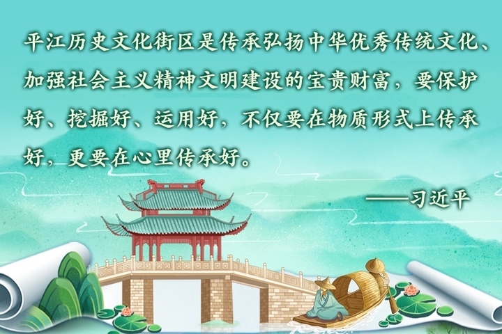 2023年7月6日上午,習(xí)近平總書記來(lái)到位于蘇州古城東北隅的平江歷史文化街區(qū)考察調(diào)研。他說(shuō):“住在這里很有福氣,古色古香,到處都是古跡、到處都是名勝、到處都是文化。‘百步之內(nèi),必有芳草’,這句話可以用在這里?!?/p>