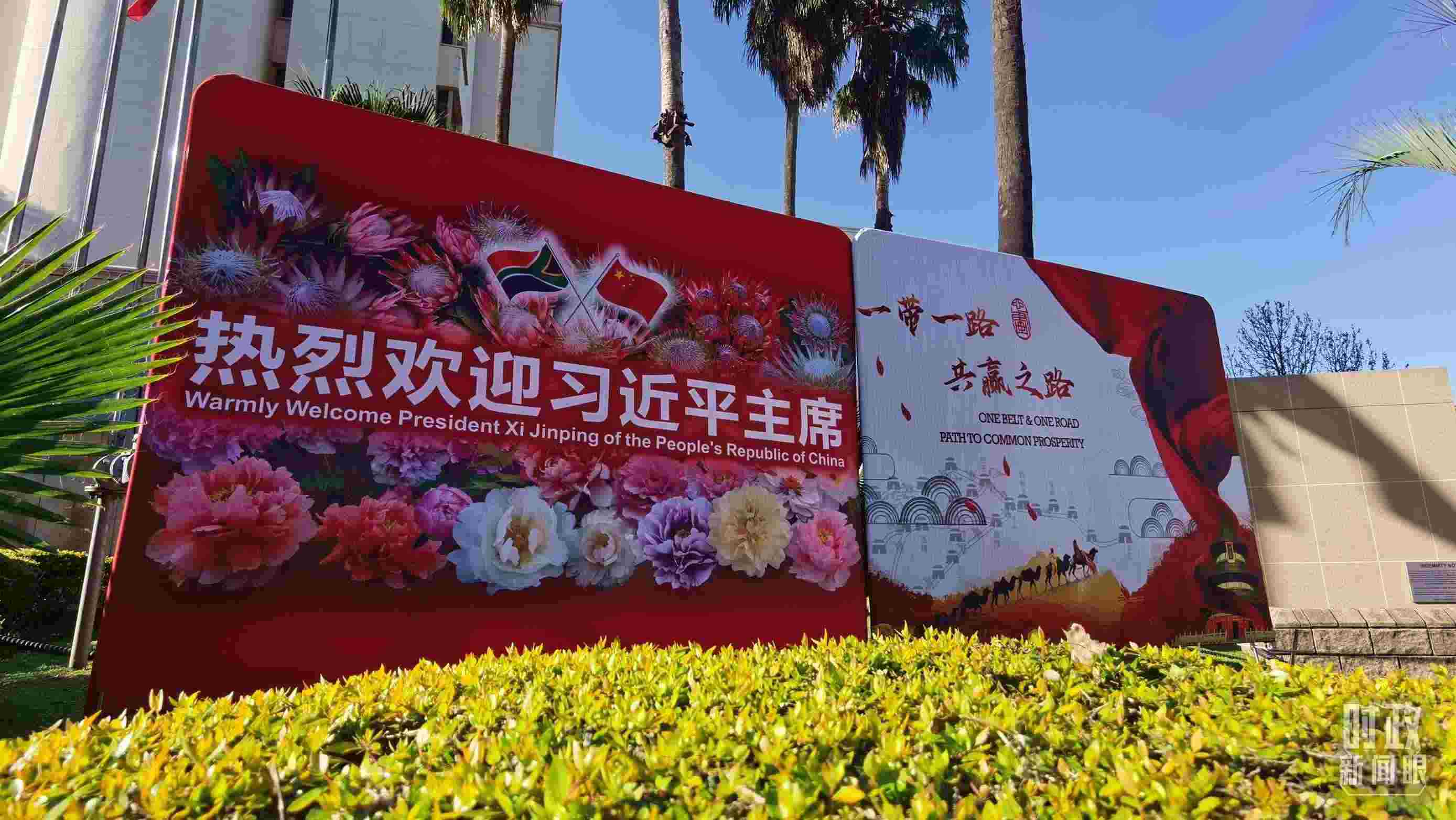 △ 2023年8月,習(xí)近平主席抵達(dá)南非約翰內(nèi)斯堡,出席金磚國(guó)家領(lǐng)導(dǎo)人第十五次會(huì)晤并對(duì)南非進(jìn)行國(guó)事訪問。圖為約翰內(nèi)斯堡街道邊“熱烈歡迎習(xí)近平主席”的標(biāo)語牌。(總臺(tái)央視記者曹亞星拍攝)