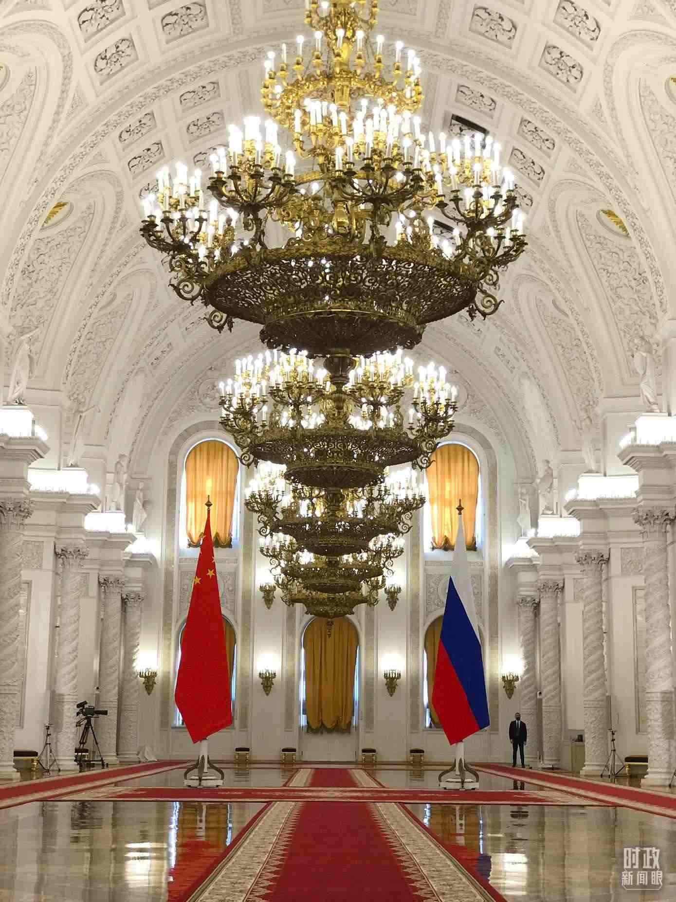 △ 2023年3月,應(yīng)俄羅斯總統(tǒng)普京邀請(qǐng),習(xí)近平主席對(duì)俄羅斯進(jìn)行國(guó)事訪問。圖為克里姆林宮喬治大廳,習(xí)主席在這里同普京總統(tǒng)握手合影。(總臺(tái)央視記者石偉明拍攝)